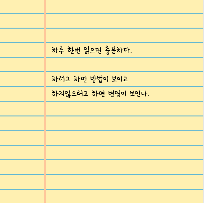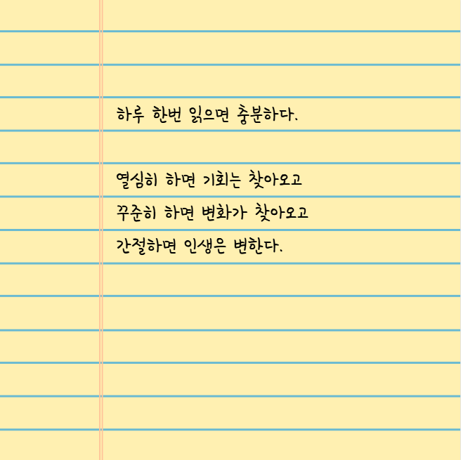 아래에는 실제로 서울대 합격자가 책상에 붙이고 매일 읽었다는 문장이다.