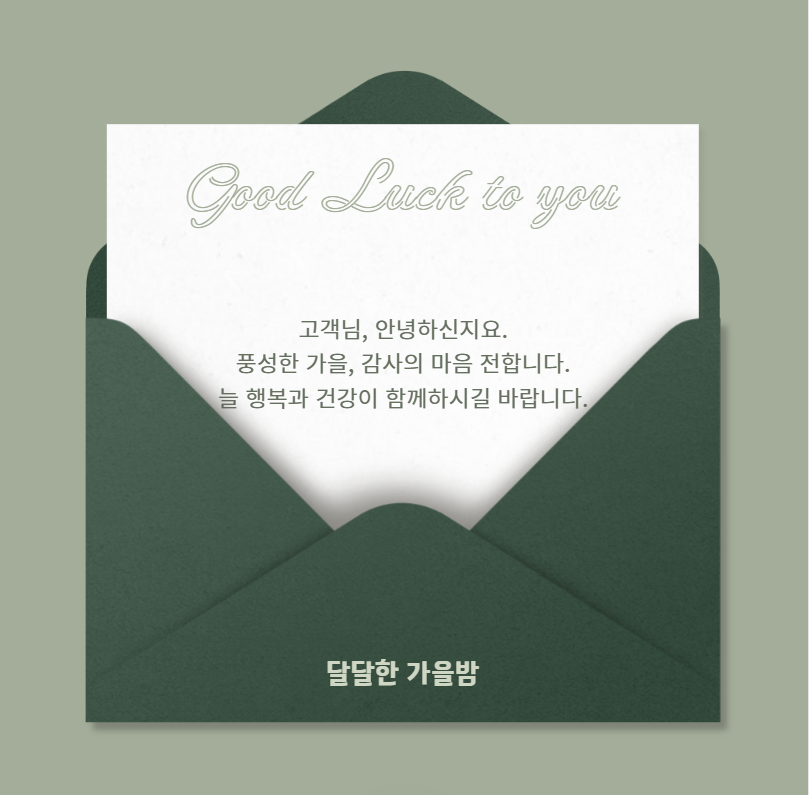 단풍이 예쁘게 물드는 계절입니다. 고객님의 나날에도 좋은 일만 가득하시길요. 감사합니다.