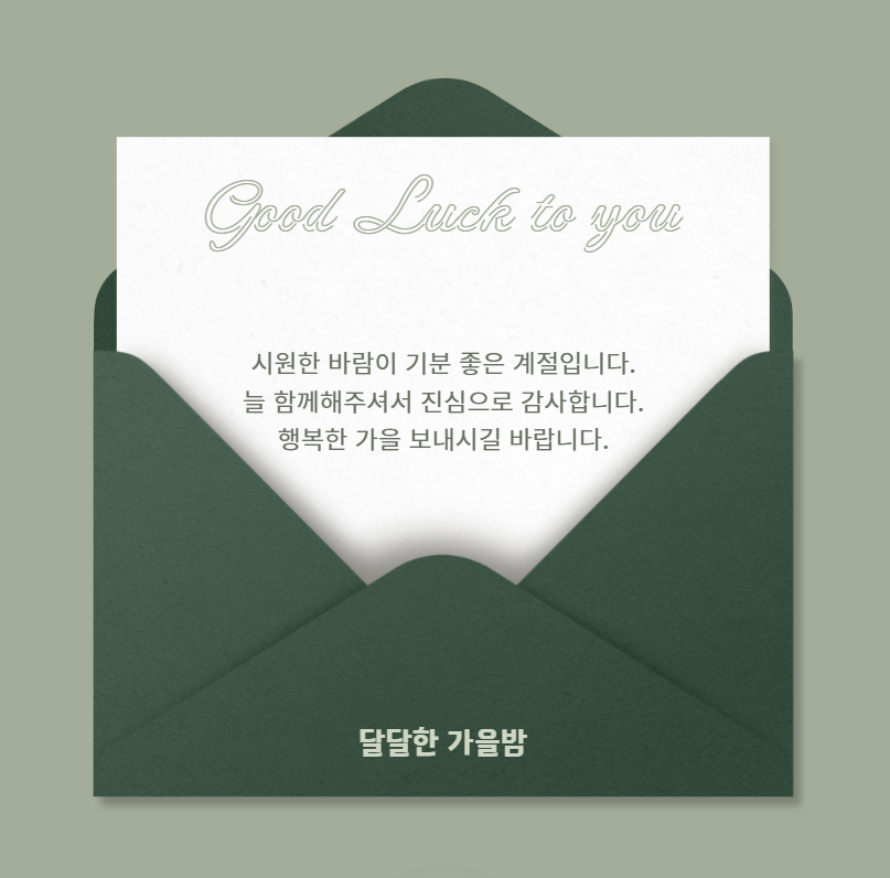 시원한 바람이 기분 좋은 계절입니다. 늘 함께해주셔서 진심으로 감사합니다. 행복한 가을 보내시길 바랍니다.