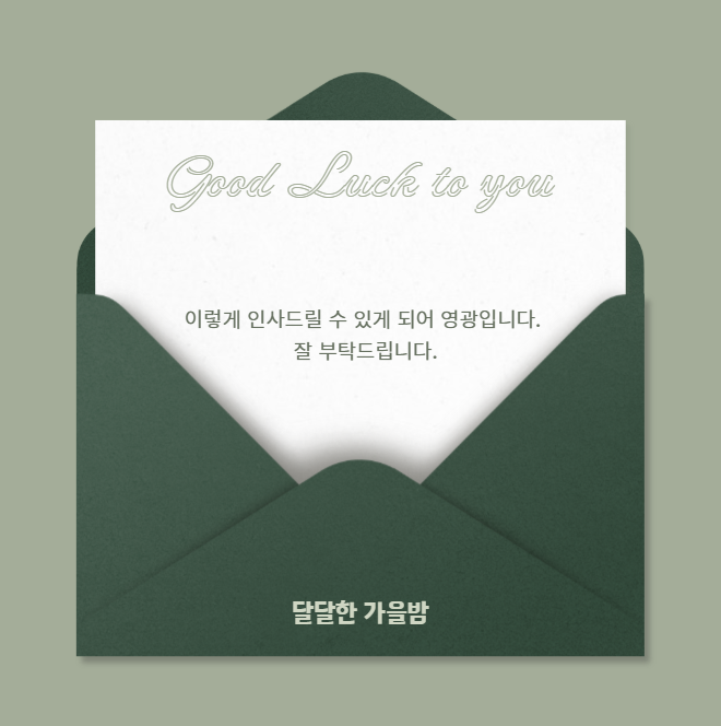 “이렇게 인사드릴 수 있어 감사드립니다. 부족하지만 예쁘게 봐주시면 감사하겠습니다.”